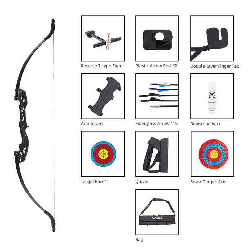 उच्च-कार्यक्षमता धनुष्य: टिकाऊ संमिश्र सामग्रीपासून तयार केलेले, धनुष्य हलके वजनदार आहे परंतु प्रौढ हात आरामात बसविण्यासाठी डिझाइन केलेले आहे. हे संतुलित ड्रॉ वजन आणि स्थिर शूटिंगचा अनुभव देते.